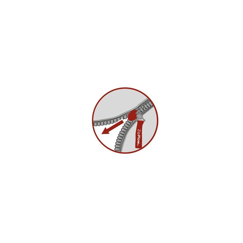 - Fermeture : type éclair ZipPlow (sans blocage de la glissière)